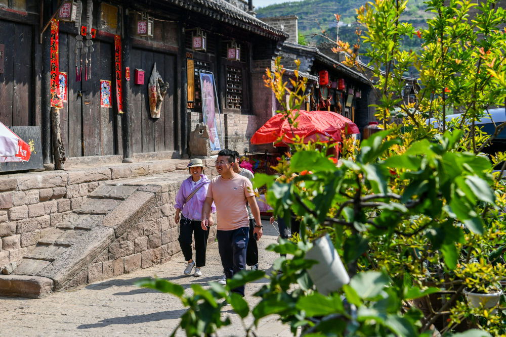 Tourists visit qikou town, Linxian County, Luliang City, Shanxi Province, which is known as the "No.1 Town of Jiuqu Yellow River" (photo taken on May 25, 2022). Xinhua News Agency reporter Cao Yangshe