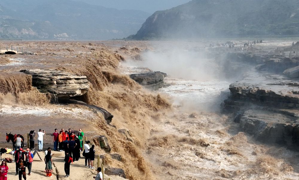 Tourists visit Hukou Waterfall on the Yellow River (photo taken on September 15, 2022, photo of drone). Xinhua News Agency reporter Tao Mingshe
